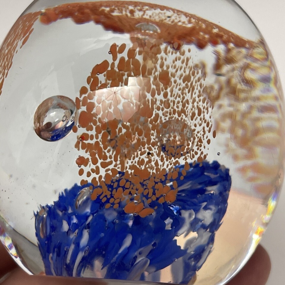 - VINTAGE Handmade Paperweight Crystal Ball FLOWERS Glass Orb Globe 2.5” Gift JD