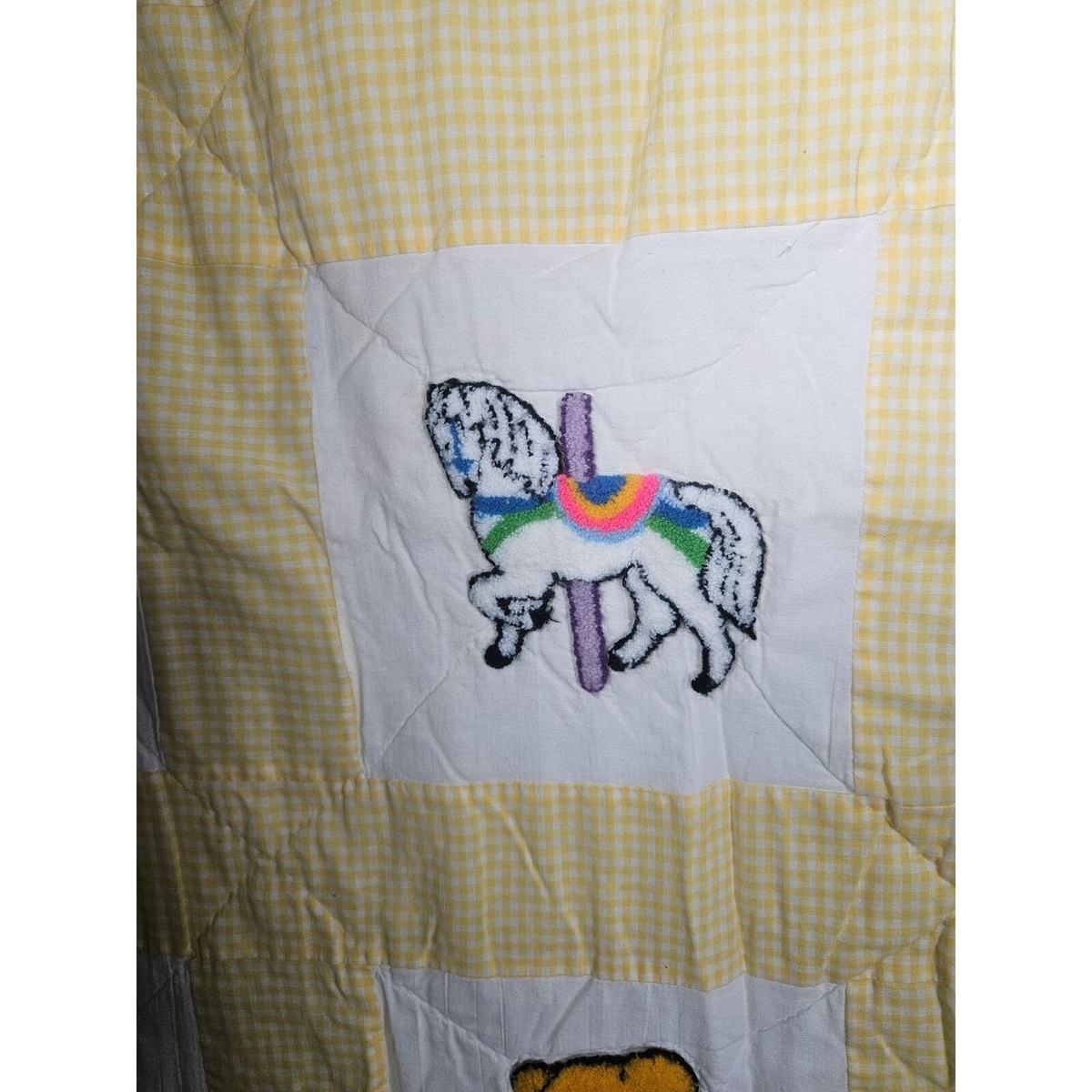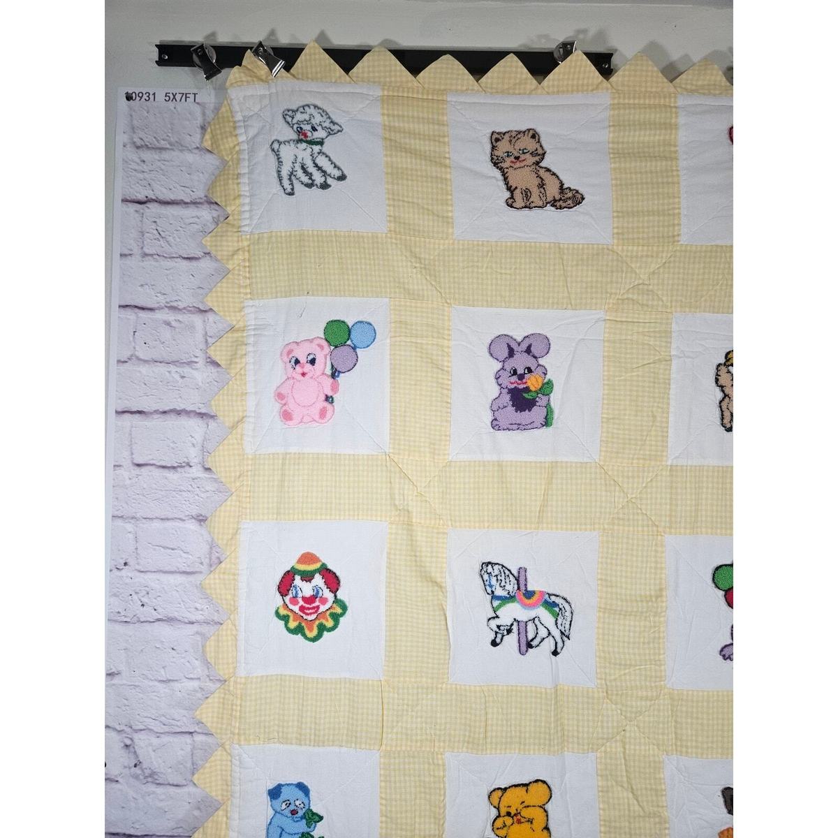 - Vintage Handmade Yellow and White Baby Quilt Animals Circus 52 x41