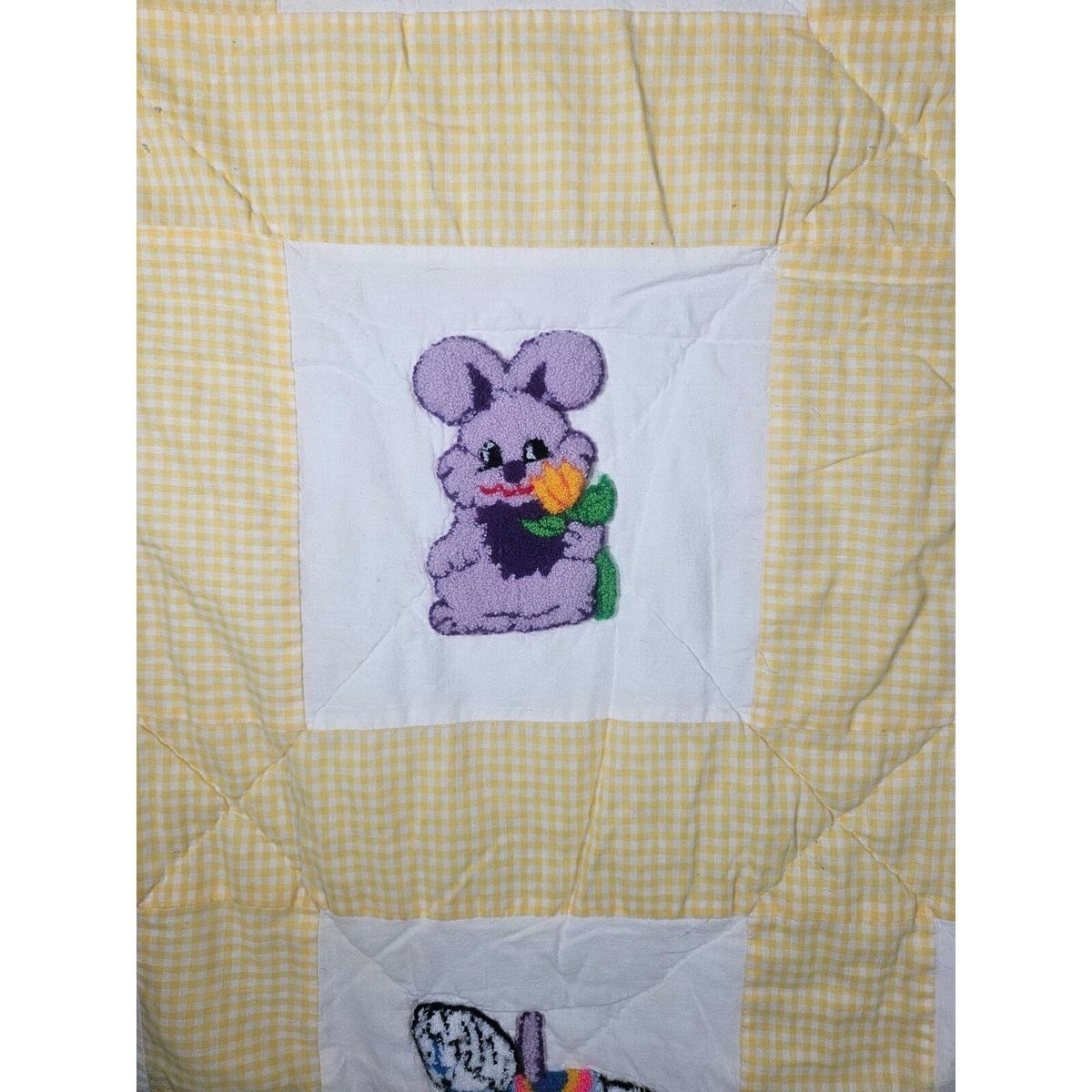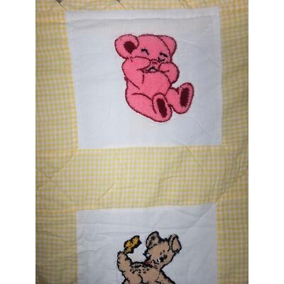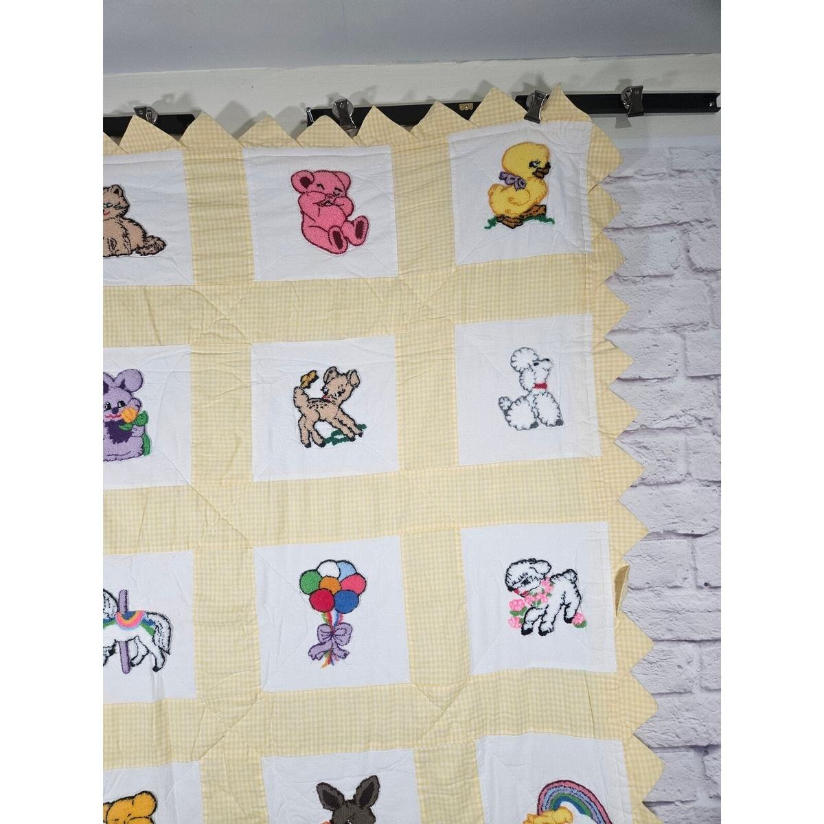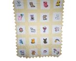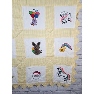 Vintage Handmade Yellow and White Baby Quilt Animals 52 x41