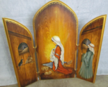 - Vintage Handpainted Folk Art Christmas Wooden Religious Triptych Nativity Scene