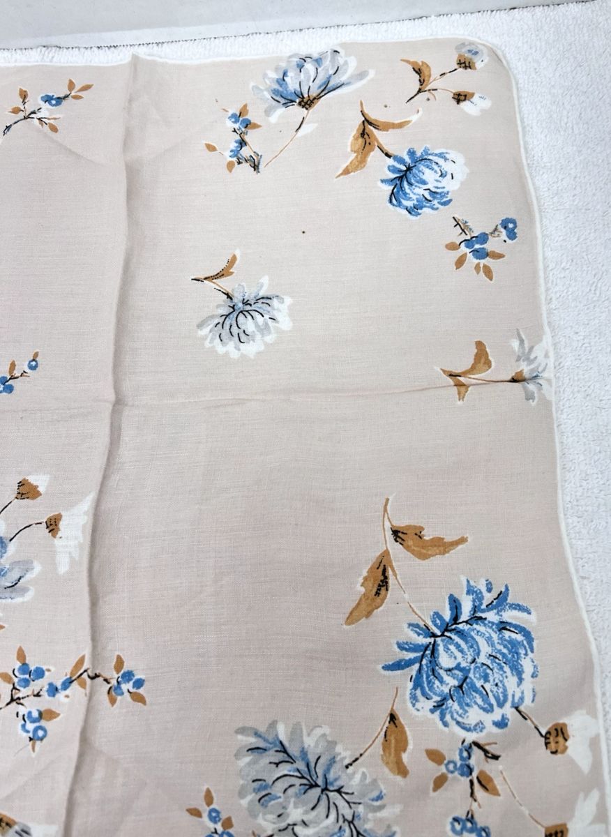 - Vintage Hankie Blue Mum Floral Flower Pinkish Brown Background 12 3/4 inch