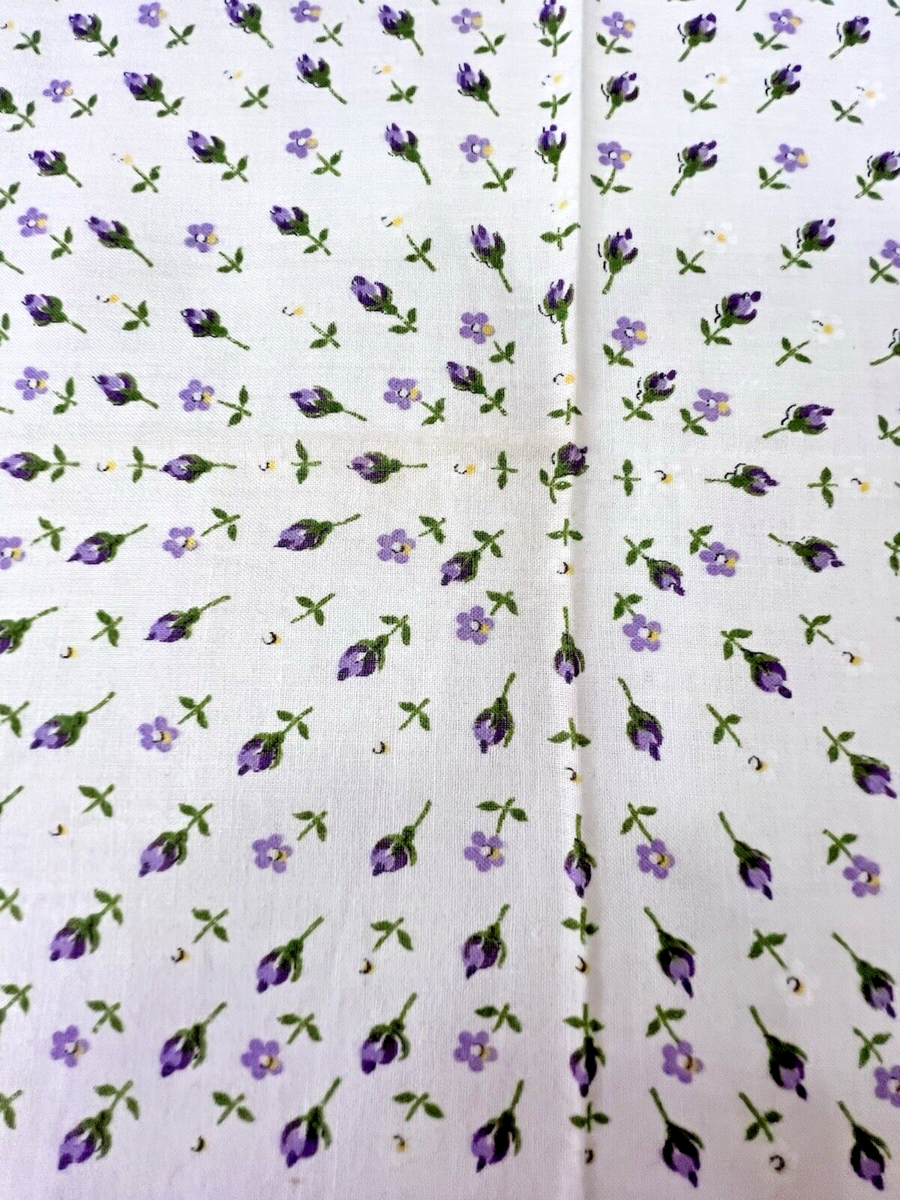 Vintage Hankie Purple Floral Rosebuds w Wide Purple Band 11 1/2 inch Ok The purple is lighter in person than in the photos! no holes or stains
