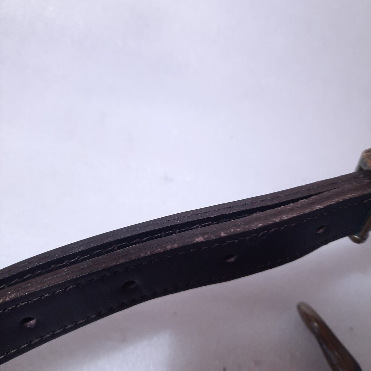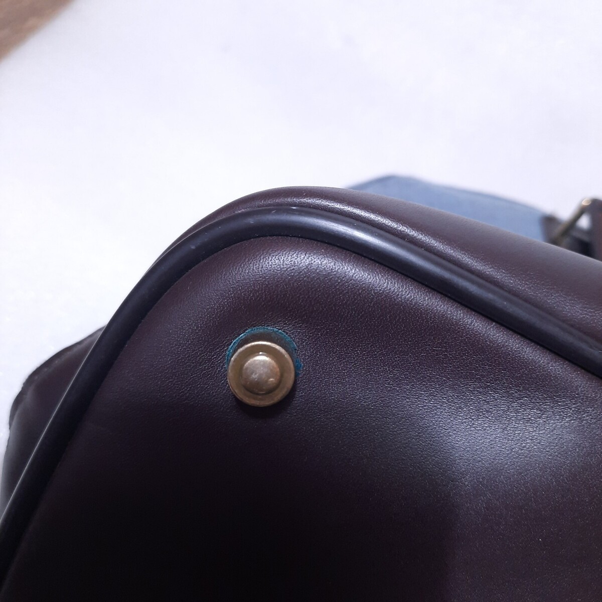 Blue twill/tweed with chocolate brown accents. Includes storage pouch, longer shoulder strap and keys for the lock. Some minor wear from use and slight patina around the metal accents but very good condition and ready for a new adventure. Rare color!