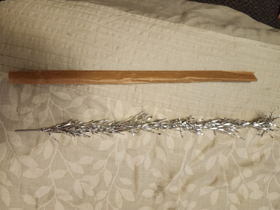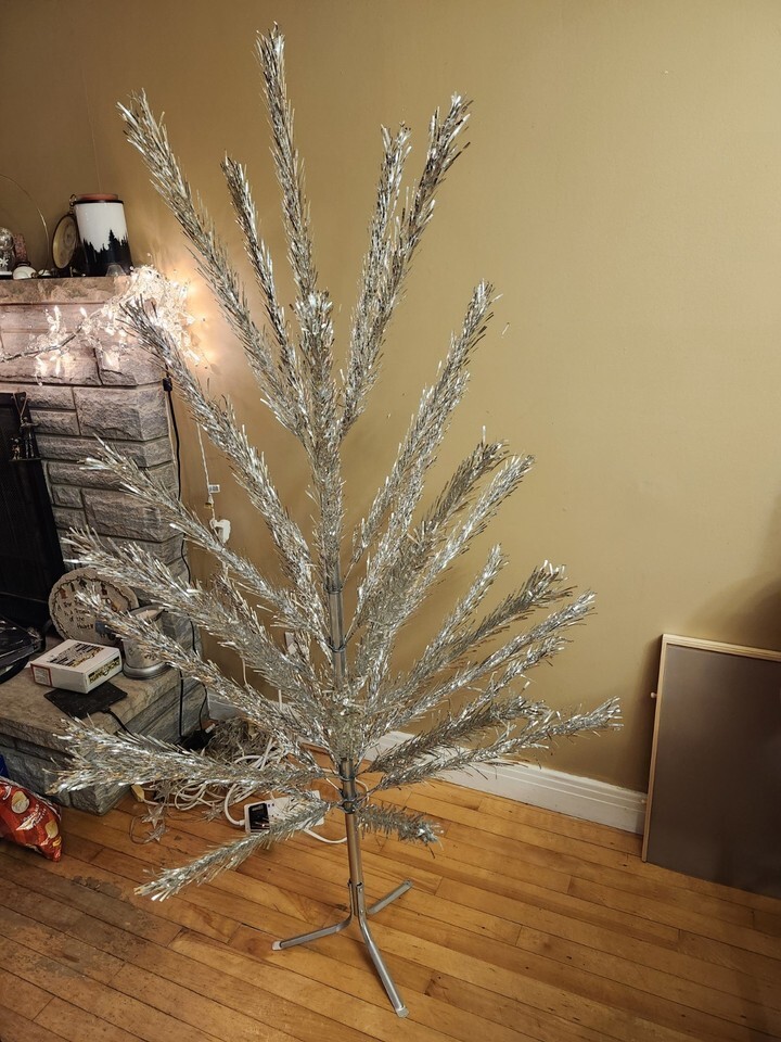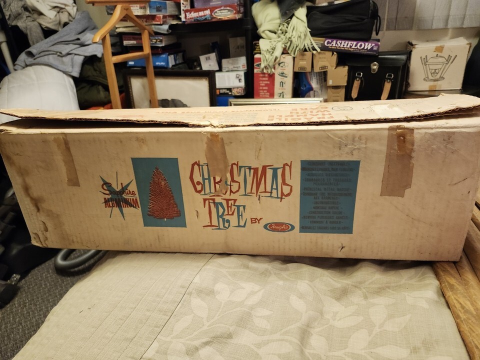 For immediate purchase is this Vintage Haugh's Sapphire Silver Christmas Tree 6 foot Model 376 in Box. This old collectible Christmas tree comes in good condition, 37 branches, complete. Lights not included. Box shows wear from storage life.
