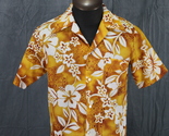 - Vintage Hawaiian Shirt - Tan, Yellow and White Floral Pattern Pomare - Men's MED
