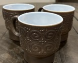Vintage Hazel Atlas Hazelware Smoke Milk Glass Scroll & Dots Embossed Mugs (3)