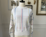 Vintage 80s Head Sportswear pastel window pane plaid sweater. Crewneck. Pastel shades of pink, lavender, blue, yellow and mint green and white. Laying flat measure measures 22 inches shoulder to hem and 20.5 inches armpit to armpit. The fabric content and size tag is washed out, but the brand tag is still legible. No stains or holes. The plaid is on the front and both side sides of the sleeves. The back of the torso is solid white. Please note that I am listing this as a size medium, and it is featured on my size medium dress form, however, there is some flexibility to the sizing, and it could also fit a large in my opinion. Please double check measurements to ensure the proper fit for you.