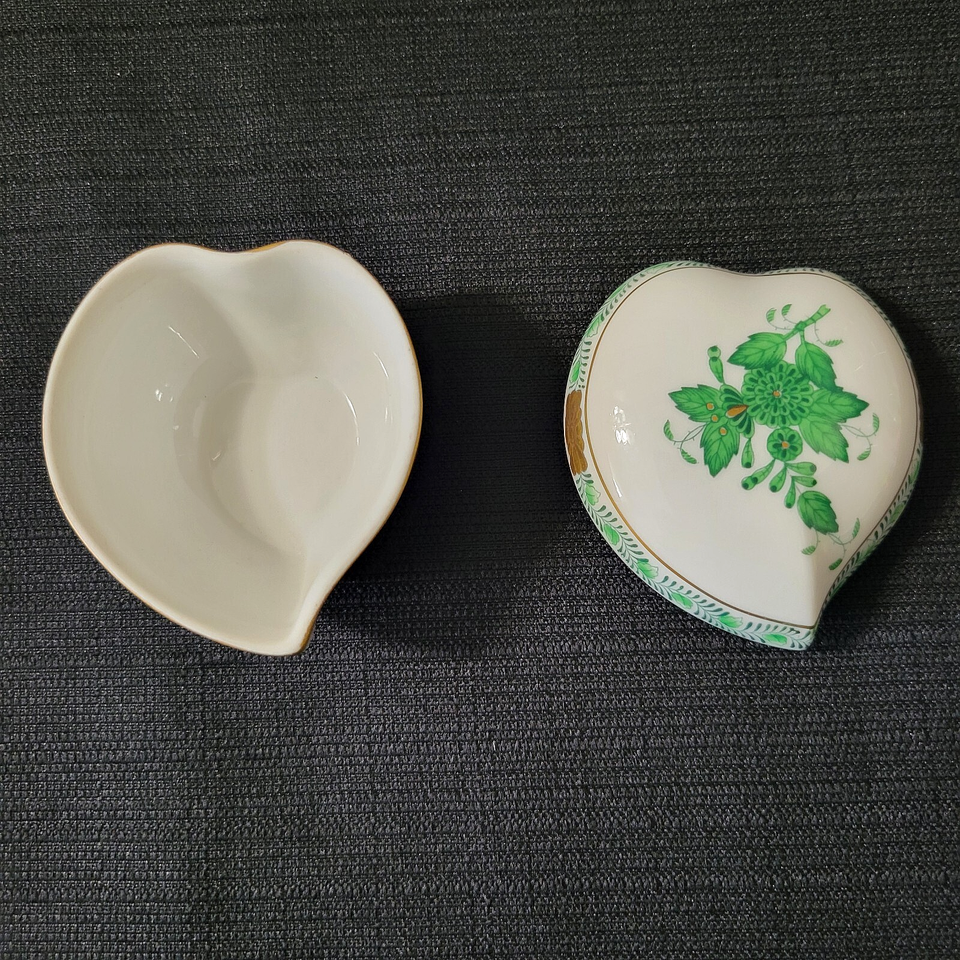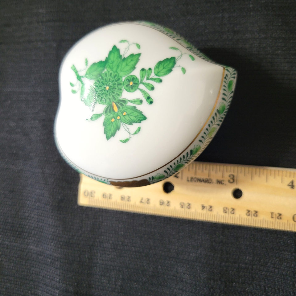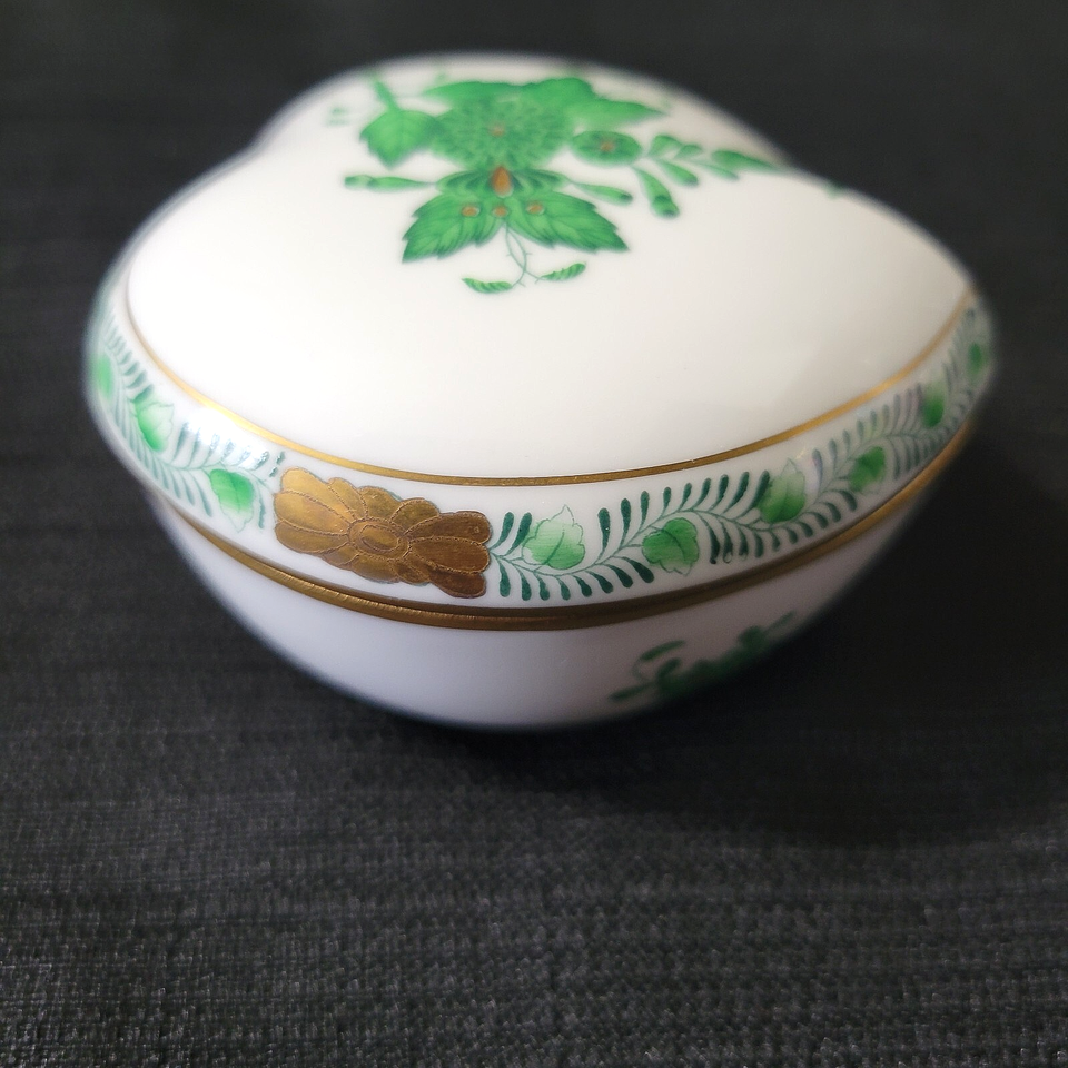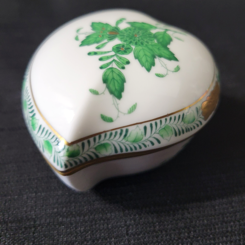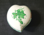 - Vintage Herend Heart Shaped Trinket Box Chinese Bouquet Green Covered Gilt 3"