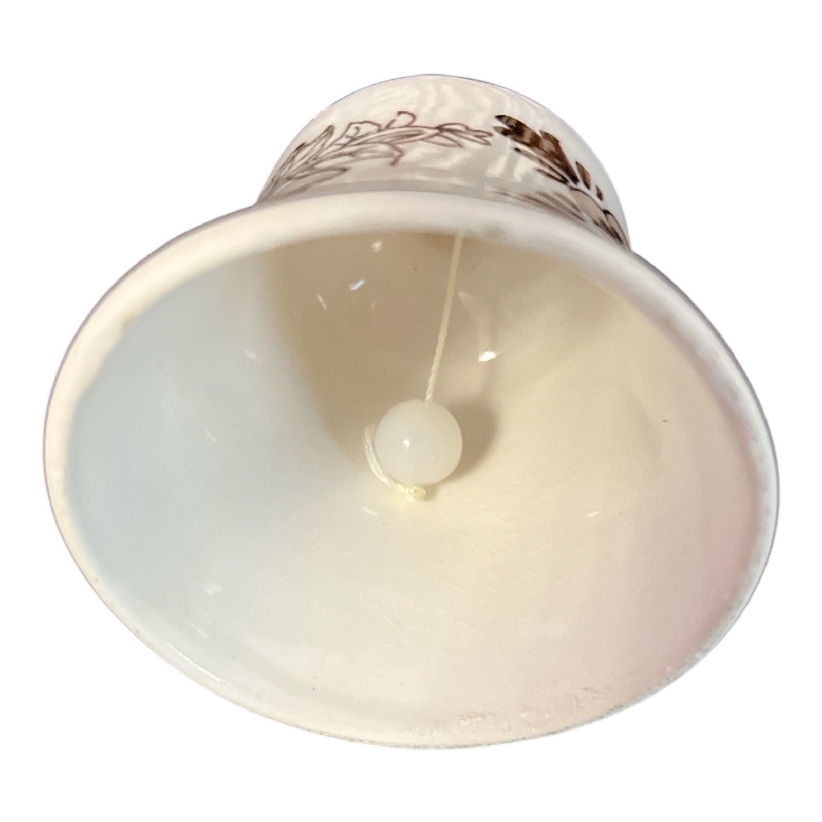 Charming Hershey?s ceramic bell from 1982 featuring the classic **Hershey?s trademark girl with cocoa pod design**. Decorated in brown transferware style with floral cocoa pod accents, dark brown handle, and a glossy glaze. Includes original ceramic clapper inside. A wonderful piece for Hershey?s memorabilia collectors or vintage advertising enthusiasts.