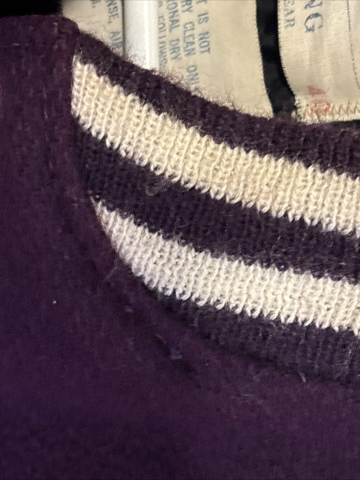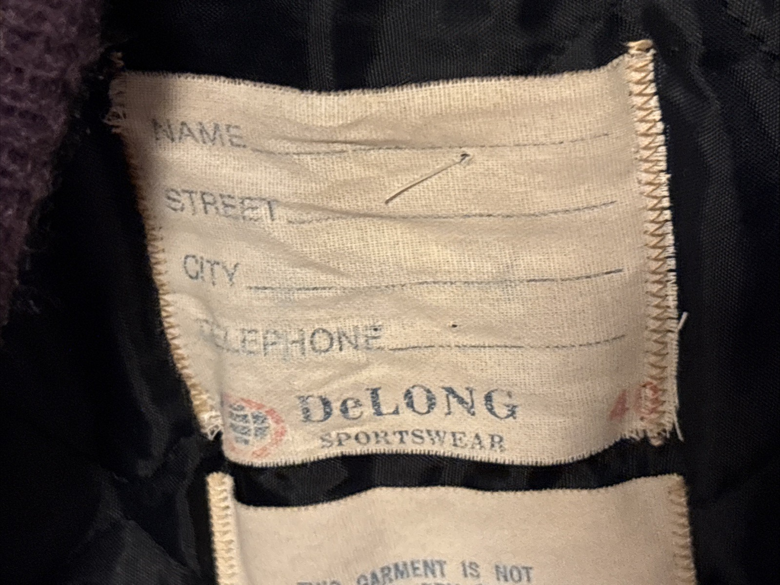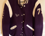 This Vintage High School Varsity Jacket is a classic piece perfect for various occasions such as travel, parties, casual outings, and formal events. Made of wool with a fleece fabric type, this jacket features embroidered logos and accents, adding a touch of nostalgia to its design. The mid-length jacket in size 44 offers a warm warmth weight of 300, making it ideal for both winter and spring seasonal wear. With a classic fit and solid purple color, this jacket with a button closure and band collar is a timeless piece that showcases a sense of school pride and heritage.