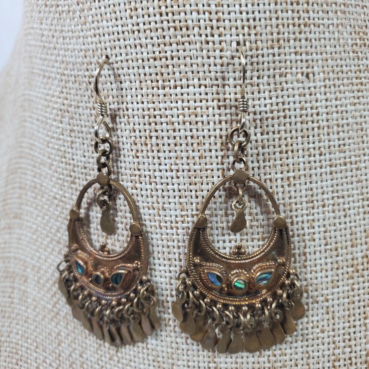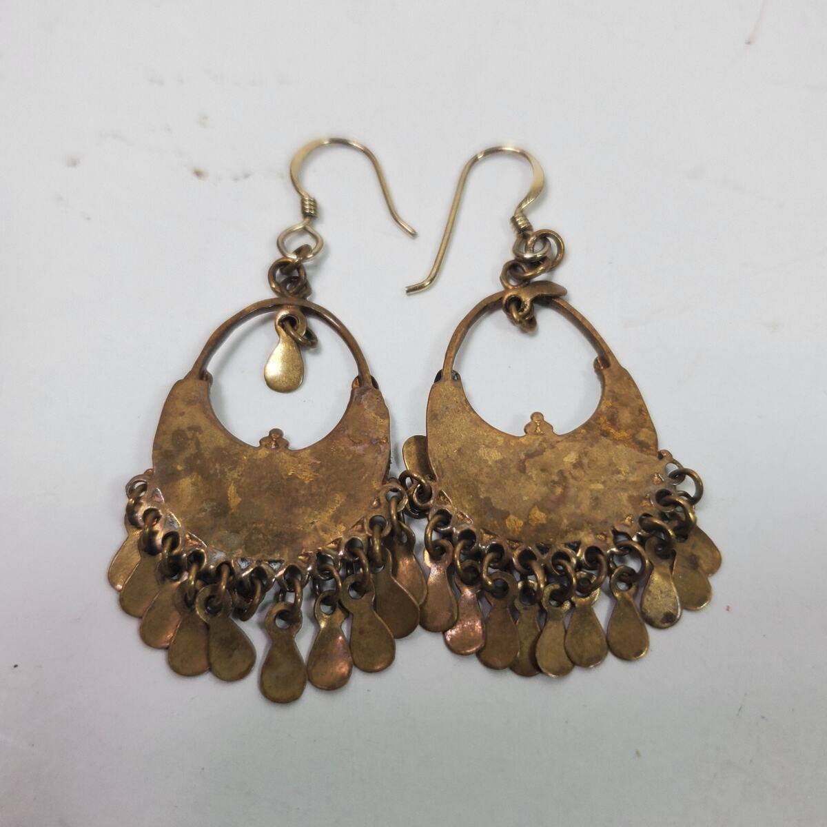 - Vintage Hippie Handbag Earrings Gold Tone 2.25 Inch Dangle Drop Hook