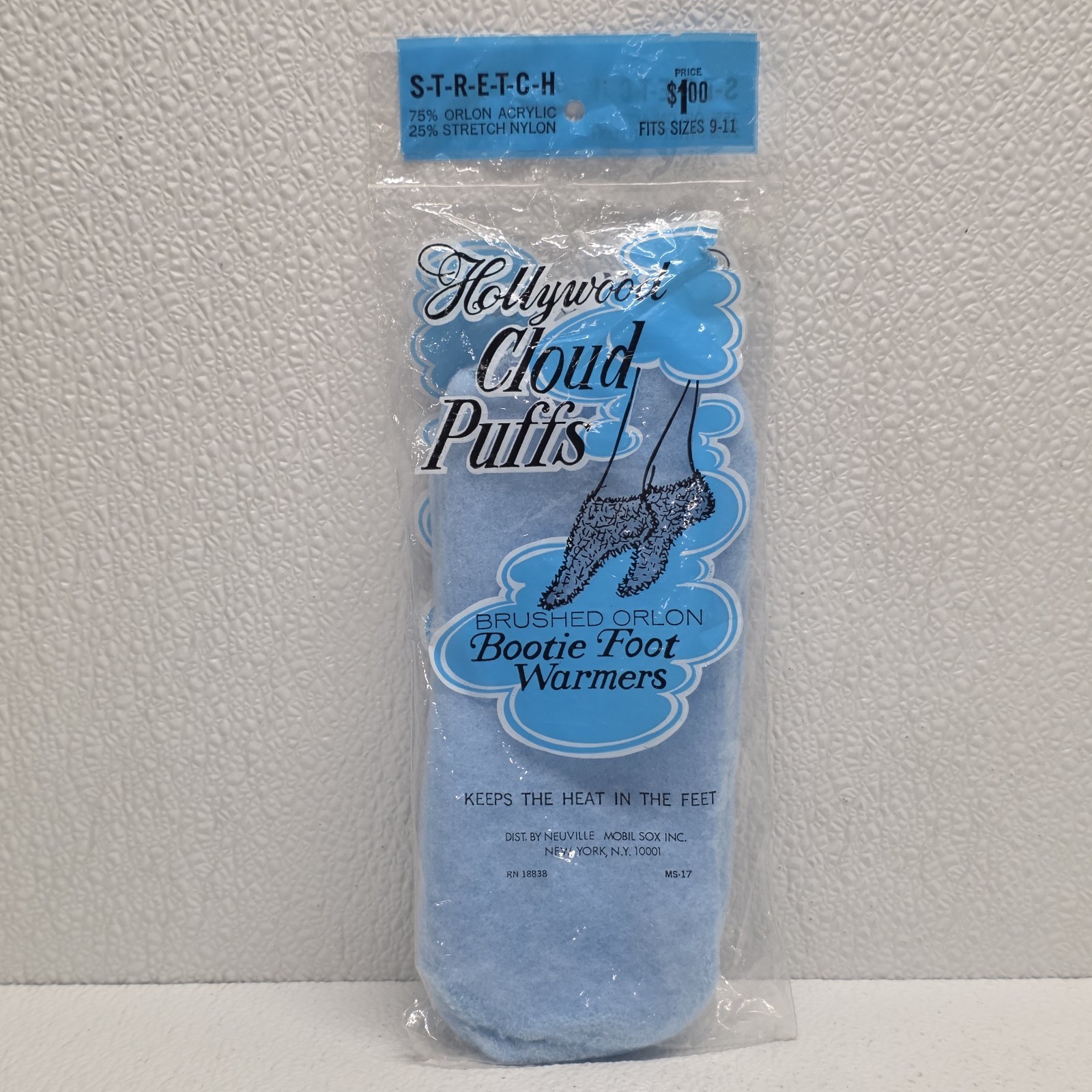 - Vintage Hollywood Cloud Puffs Blue Bootie Foot Warmer Socks Orlon Sizes 9-11