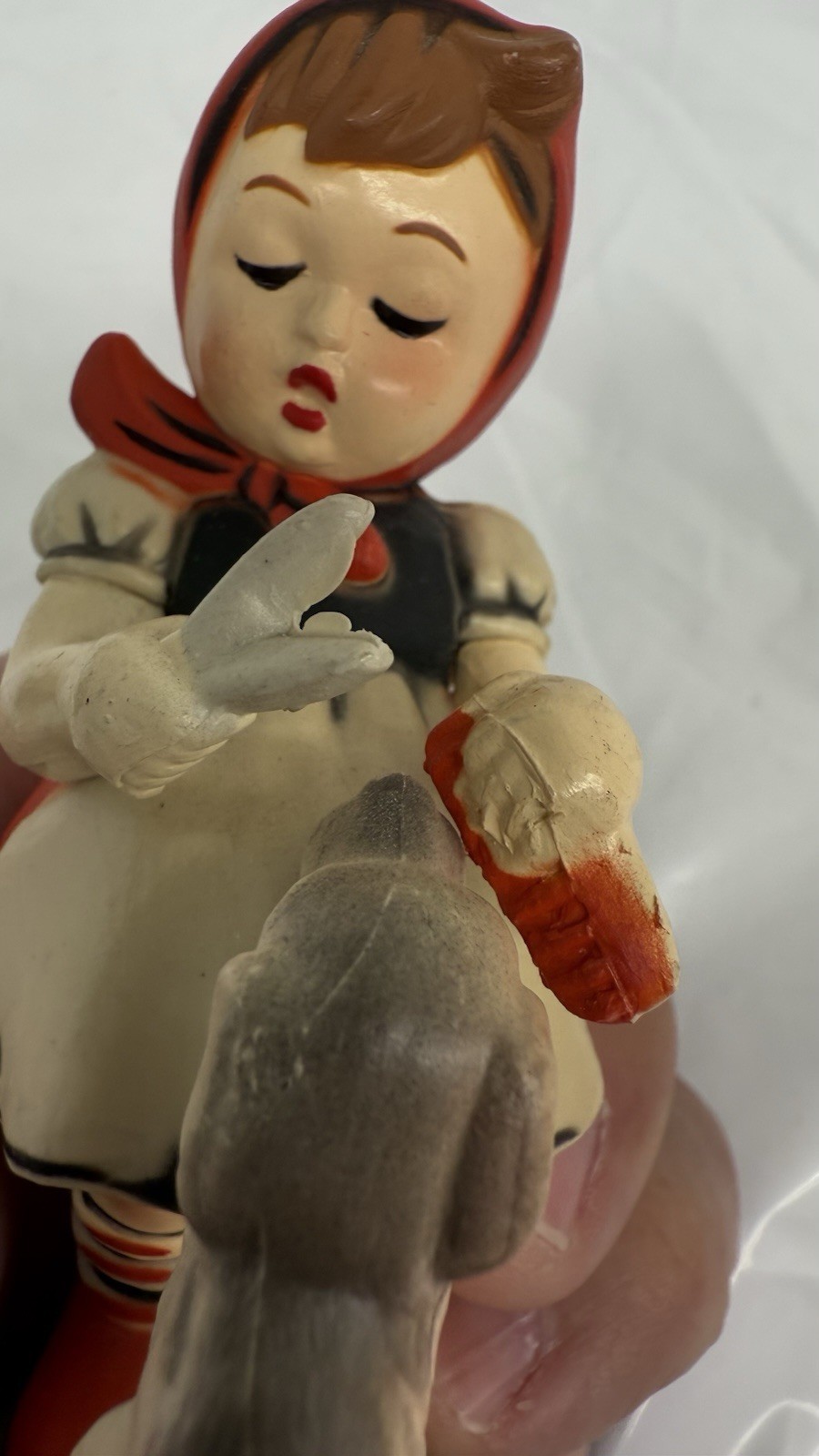 - Vintage Hummel Style Christmas Tree Ornament Dog And Girl Figurine