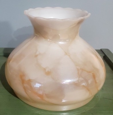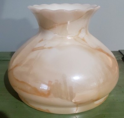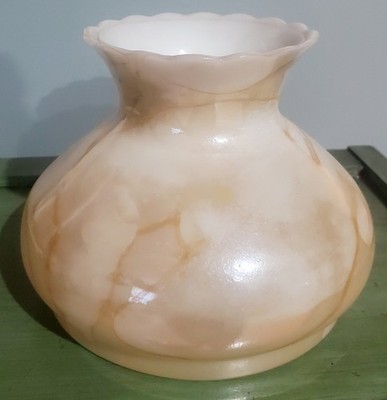 - Vintage Hurricane Oil Lamp Light Shade Iridescent Peach Marbling 6 1/2" Fitter
