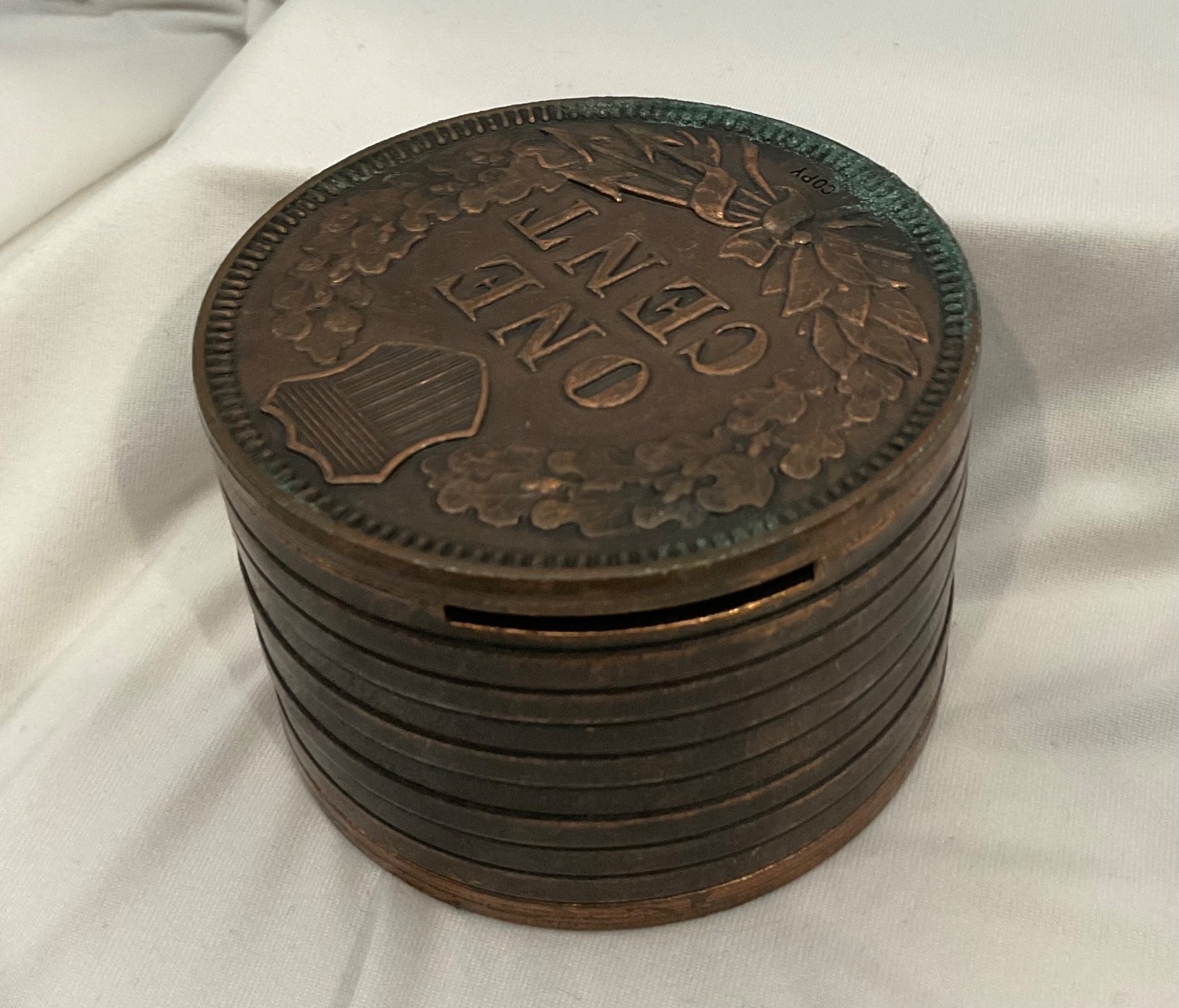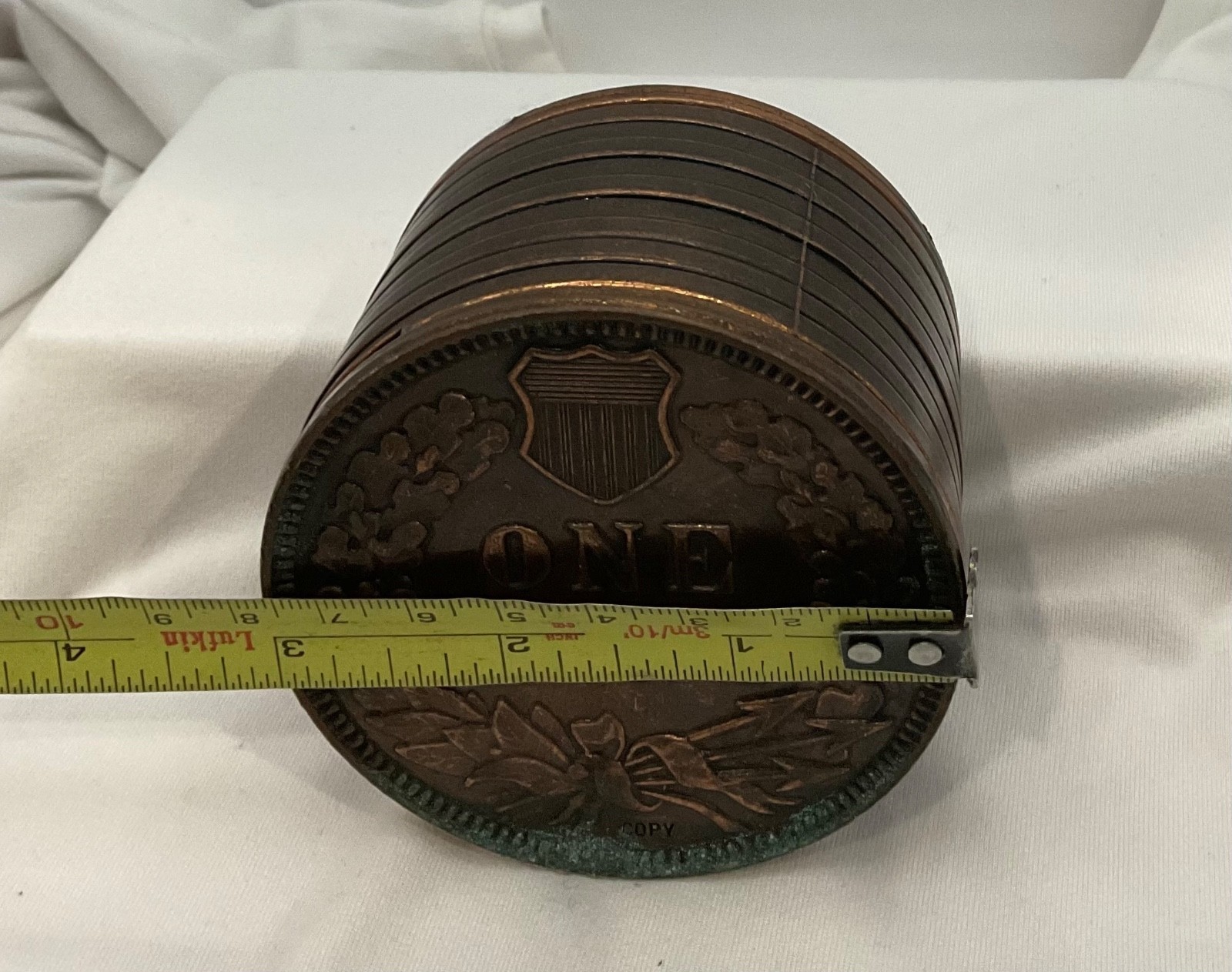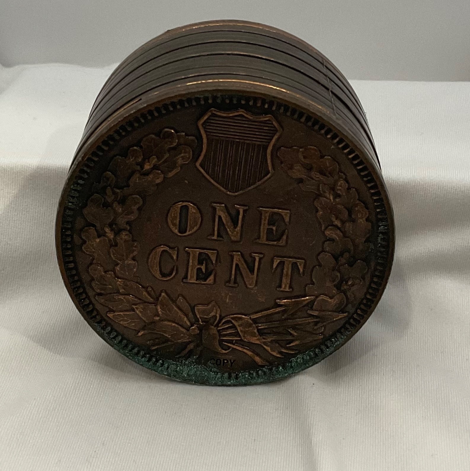 - Vintage Indian Head 1877 One Cent Copper Stacked Souvenir Coin Penny Bank
