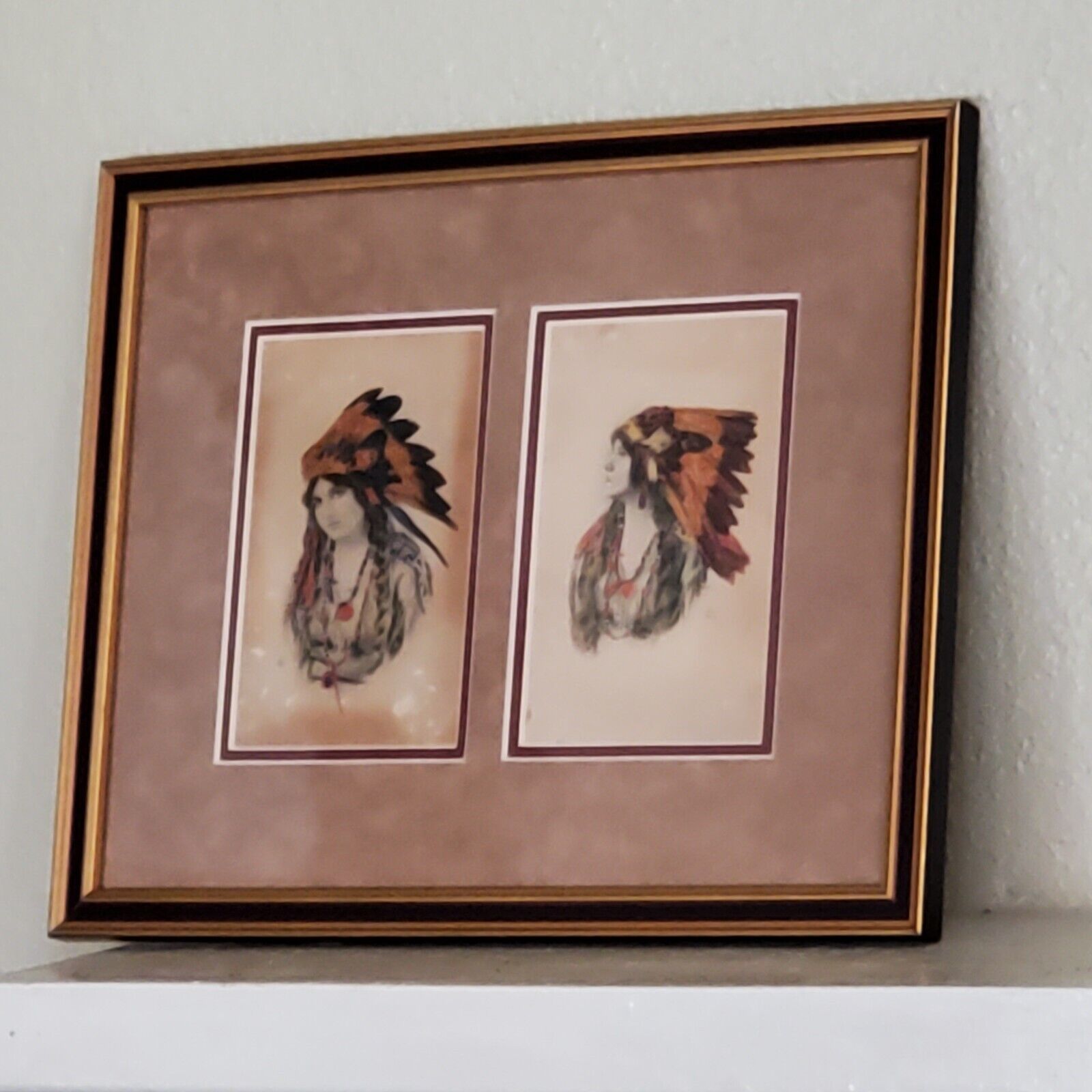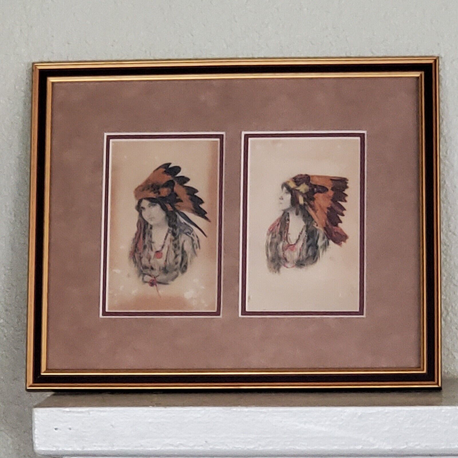- Vintage Indian Maiden 1930s ART Framed 13x10" UNSIGNED Claremore OK