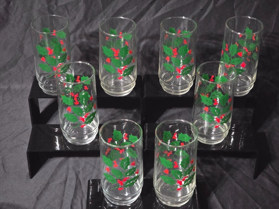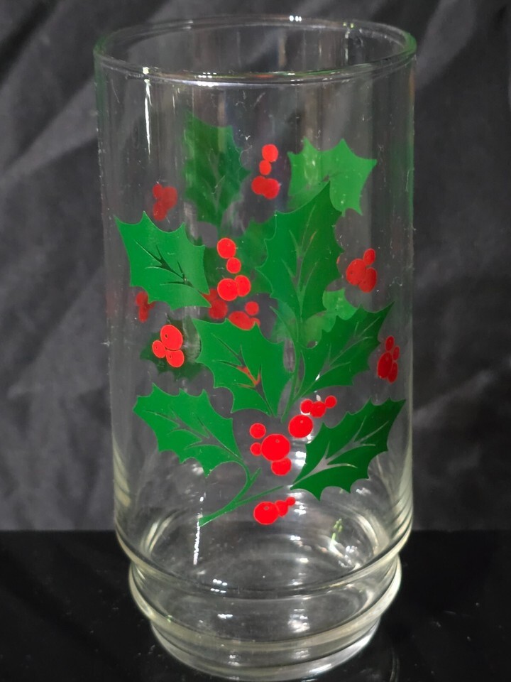 - Vintage INDIANA GLASS 5.875" Tumbler HOLLY & BERRIES 16oz Iced Tea - Set Of 8