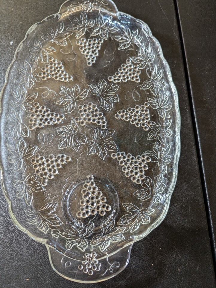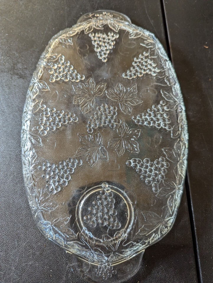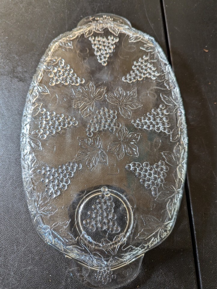 - Vintage Indiana Pressed Glass Harvest Grape Crystal Serving Platter 11.25”