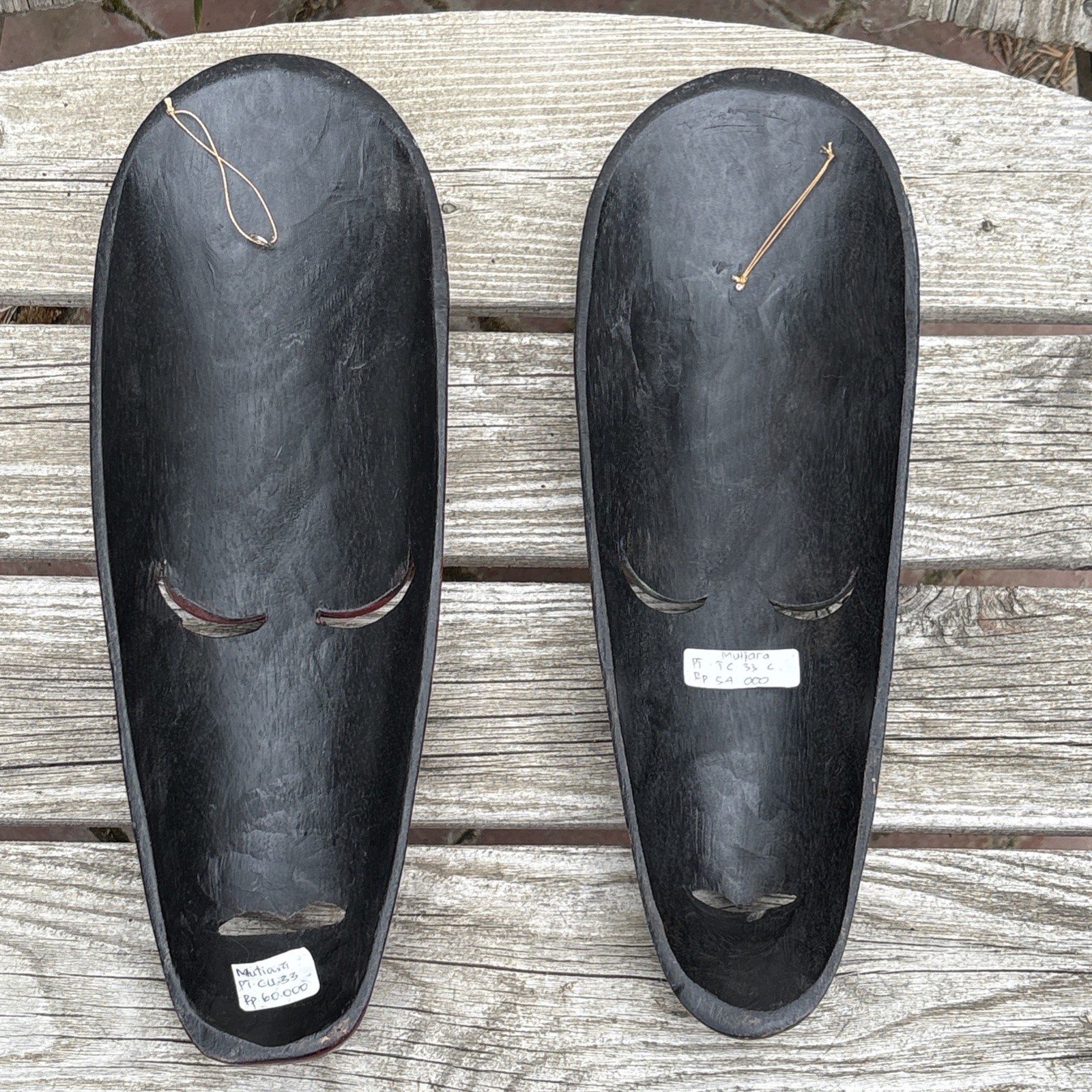 Vintage 70s CARVED WOOD Wall MASKS from Indonesia