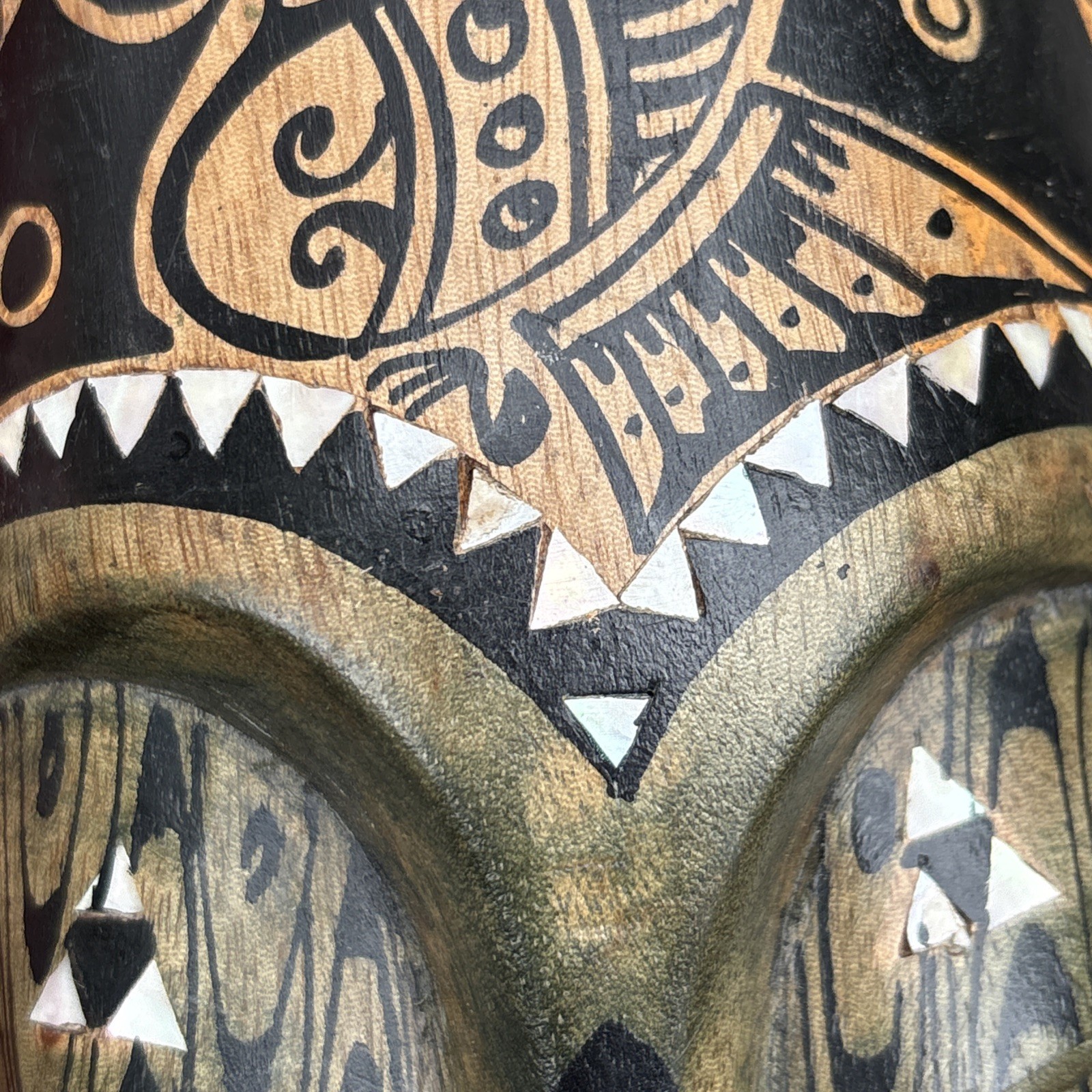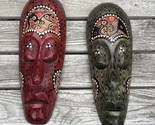 - Vintage Indonesian Wood Mask Lot Hand Carved Tribal Art Painted Face Green Red
