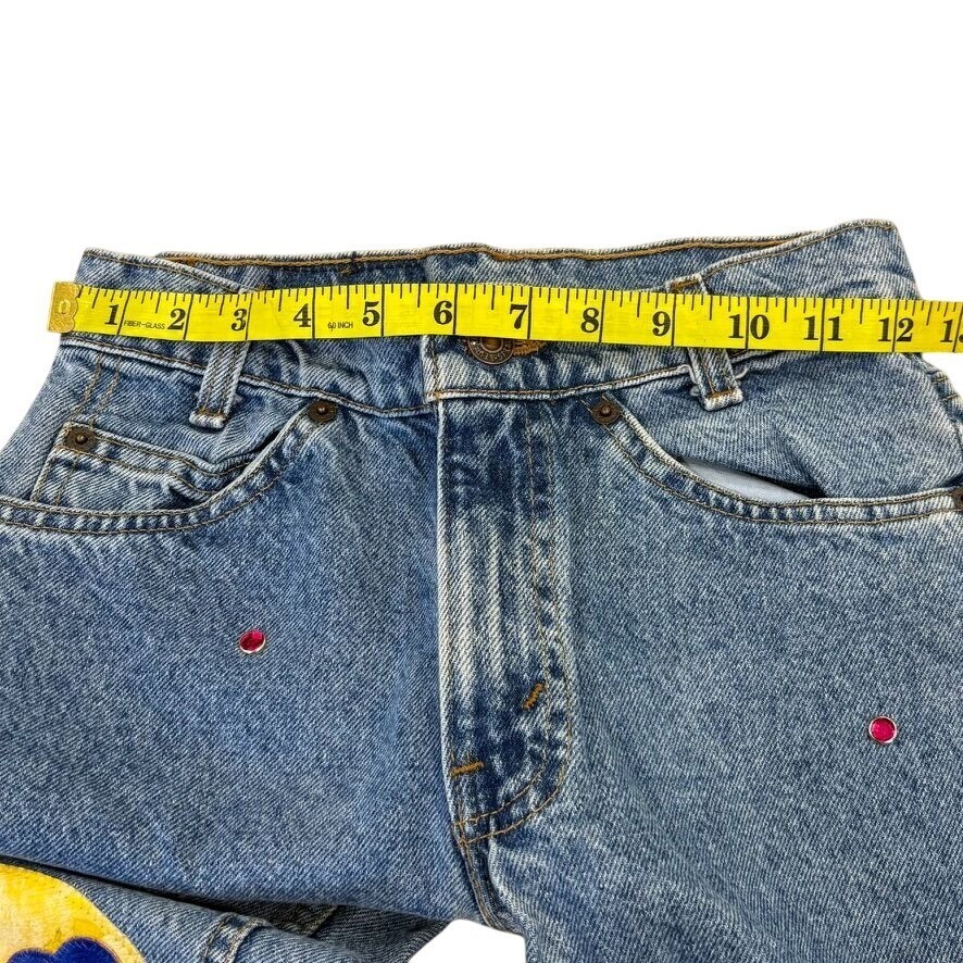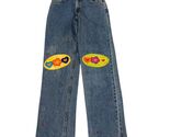 - Vintage-Inspired Straight-Leg Denim Jeans W/ Retro Floral & Heart Patches