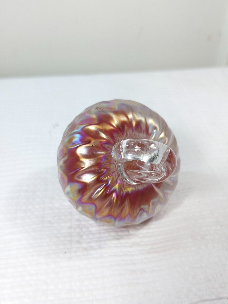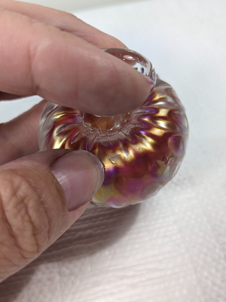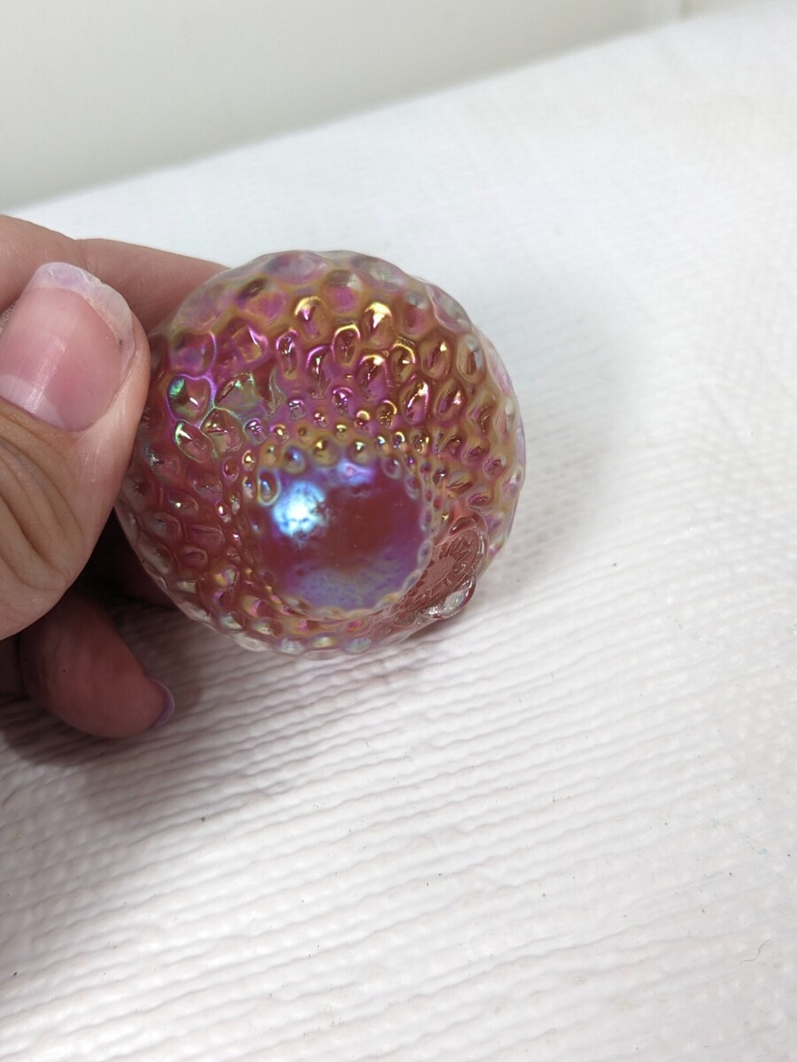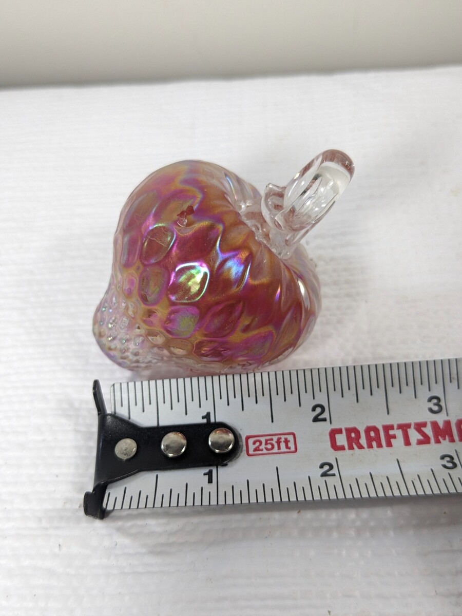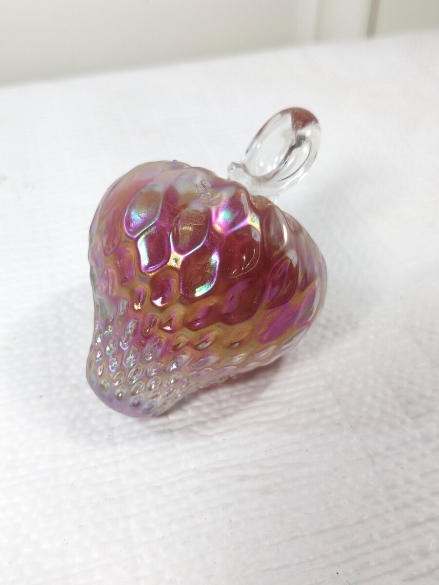 - Vintage Intaglio Anton strawberry iridescent red pink Glass Paperweight Ornament