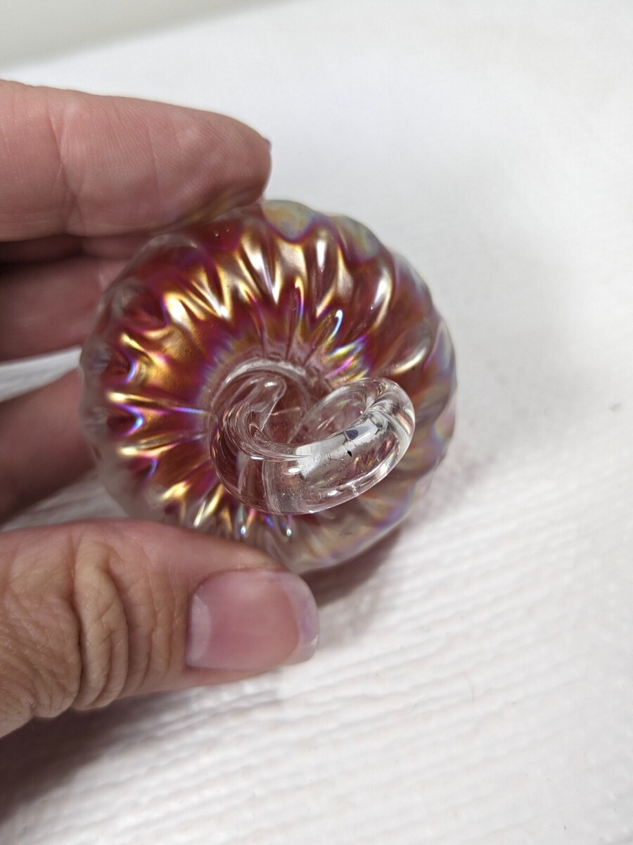 Vintage Intaglio Anton strawberry iridescent red pink Glass Paperweight Ornament