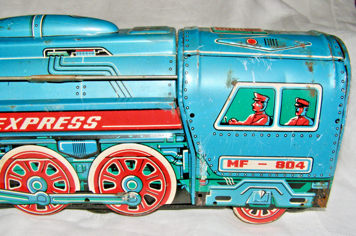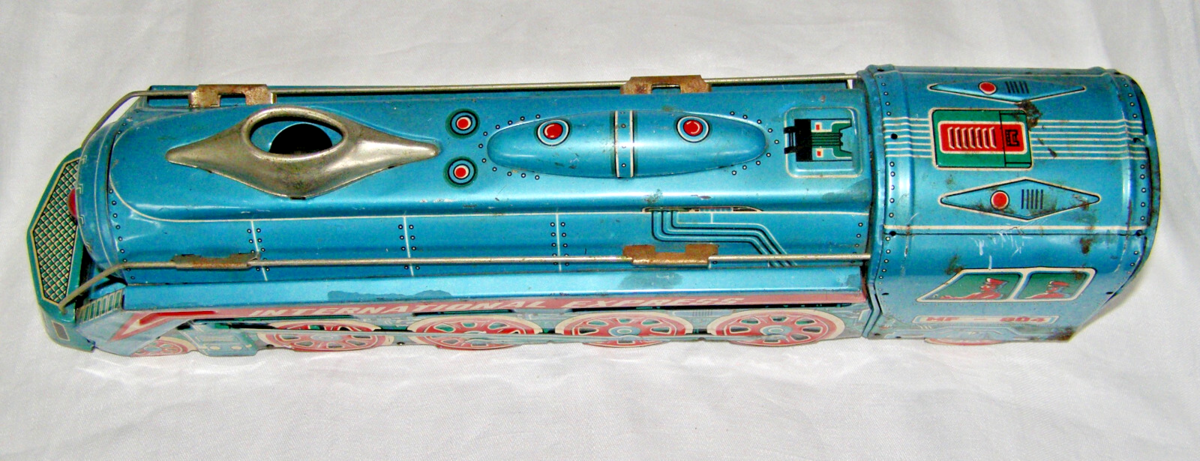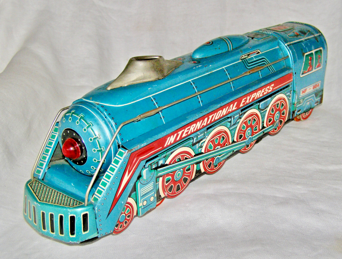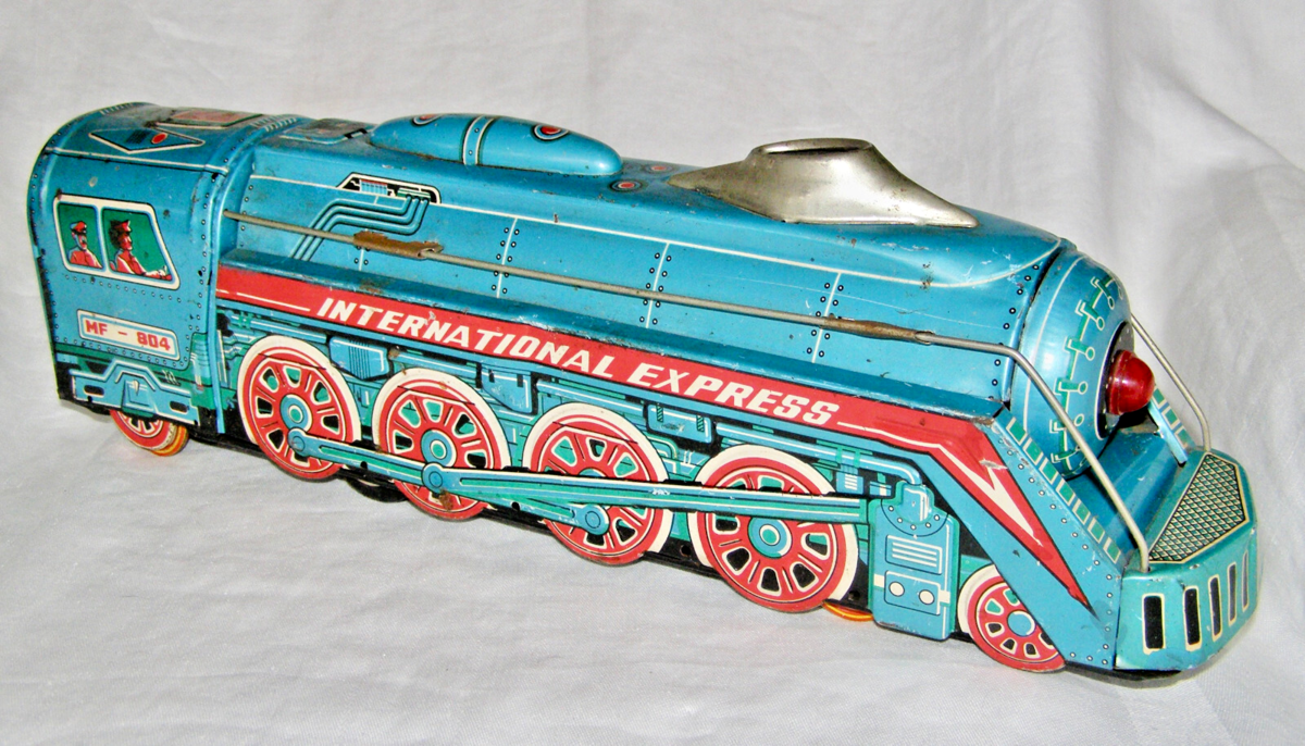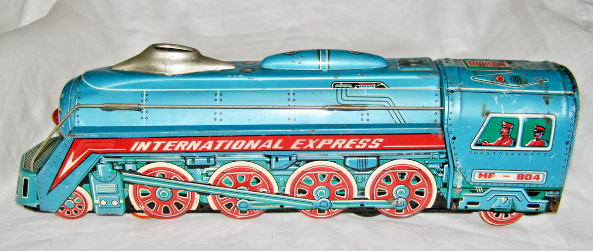 - VINTAGE "INTERNATIONAL EXPRESS MF-804" TIN FRICTION LOCOMOTIVE - LARGE SCALE