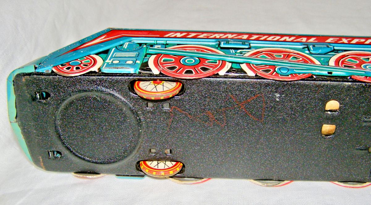 VINTAGE "INTERNATIONAL EXPRESS MF-804" TIN FRICTION LOCOMOTIVE - LARGE SCALE