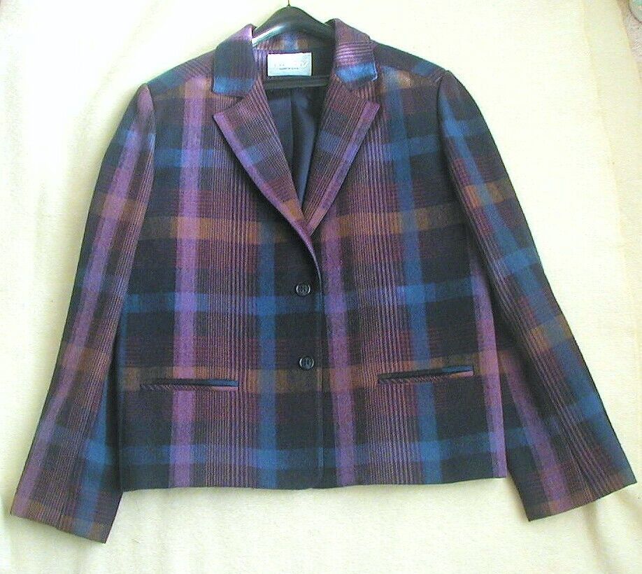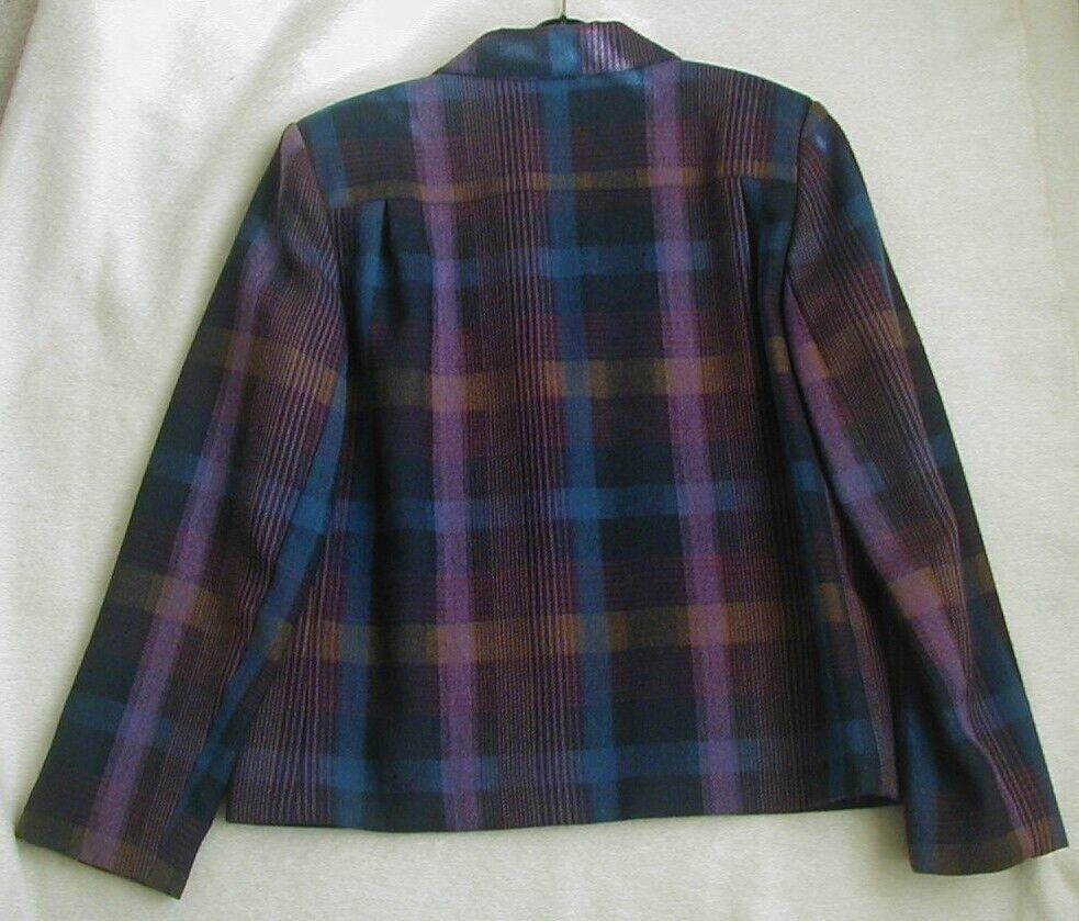 - Vintage Intuitions Plum Plaid 100% Wool Lined Jacket Blazer Size 16