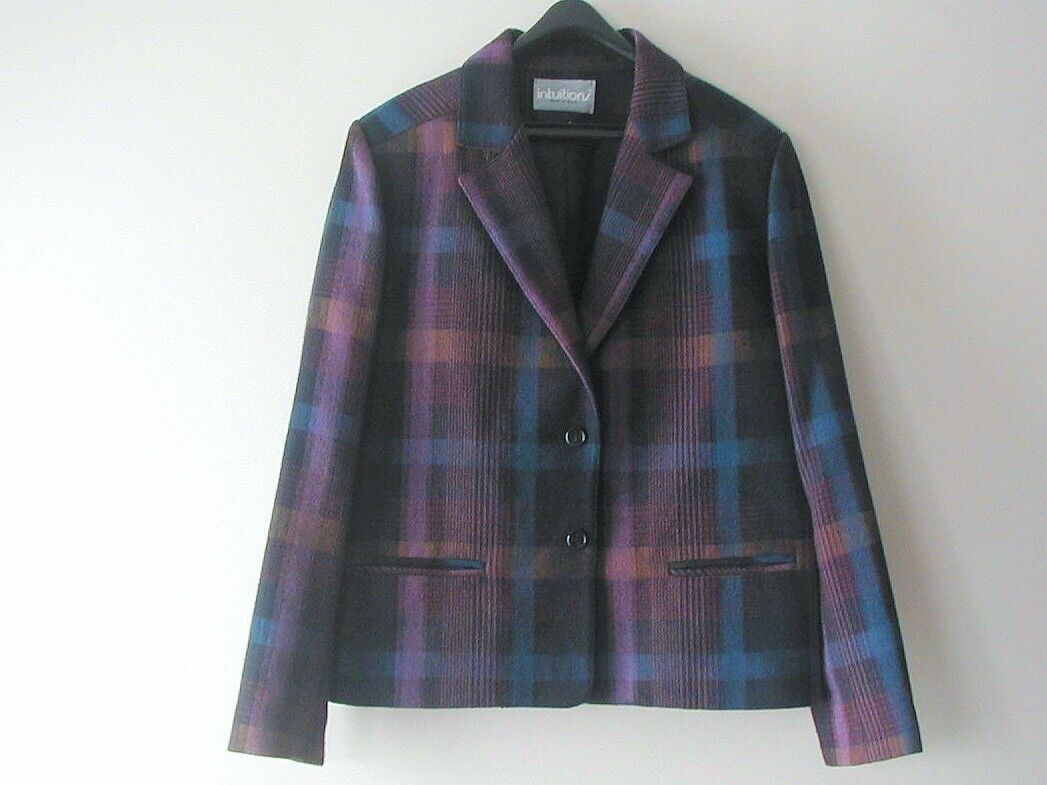 For sale is a vintage women?s jacket by Intuitions. It is a size 16. The fabric content of the jacket is 100% wool.