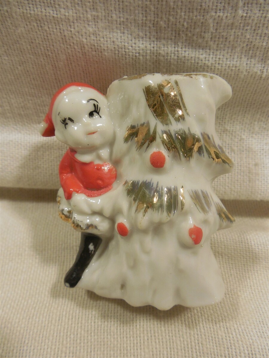 - Vintage Japan Ceramic Christmas Red Pixie Elf Girl Tree Vase 2 3/8"