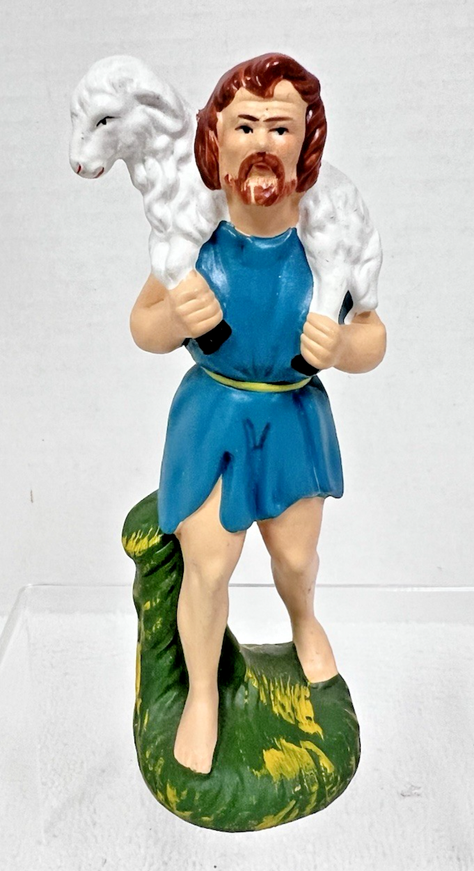 - Vintage Japan Nativity Shepard w Sheep 5" T 2 W Composition Great Shape