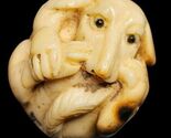Vintage Japanese Ojime Bead Dog Hand Carved Signed Zodiac Showa Era