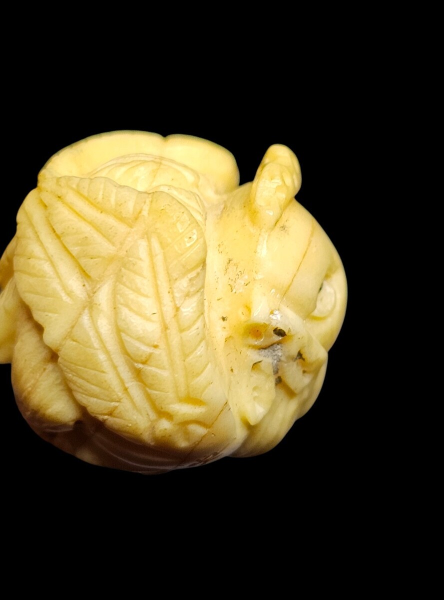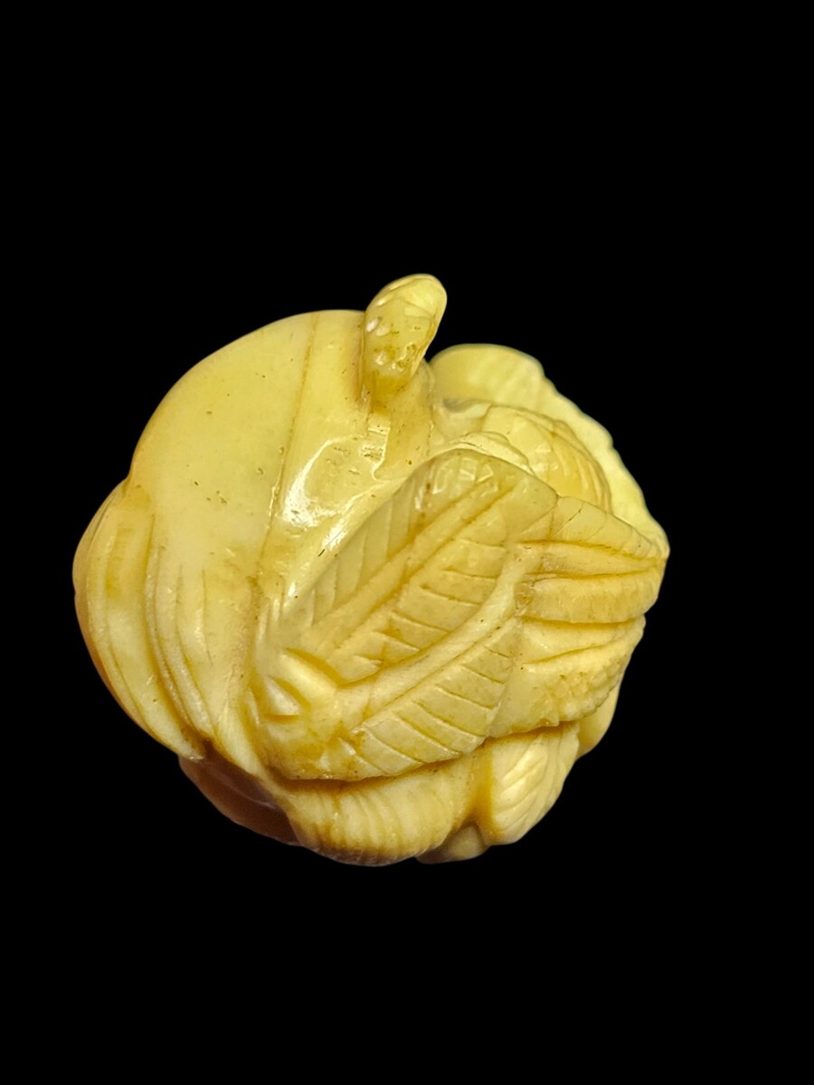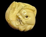 UP FOR SALE: Beautifully hand-carved vintage Japanese ojime bead from the early?mid Showa era (1930s?1950s). This piece shows excellent craftsmanship, warm natural patina, and detailed carving throughout. Features a hand-inscribed artisan signature and the traditional curled zodiac posture used in Japanese workshop-made ojime from this period.