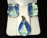 Vintage Japanese sterling reverse carved blue glass pagoda pendant and earring s