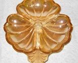 Vintage Jeanette Amber Carnival Glass Clover Candy Relish Dish Irridescent