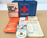 - Vintage Johnson & Johnson First Aid Kit 1990 Metal Box Blue Wall Mount 8172