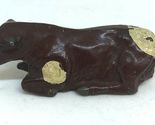 Vintage Johillco Painted Lead Cow, Brown with White Spots, Lying Down