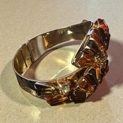 - Vintage Juliana Amber & Citrine & Clear Rhinestone Crystal Clamper Bracelet