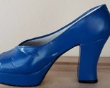 This shoes measures approximately 3.5" deep (toe to heel) x 1.50" wide (side to side) x 2.75" tall