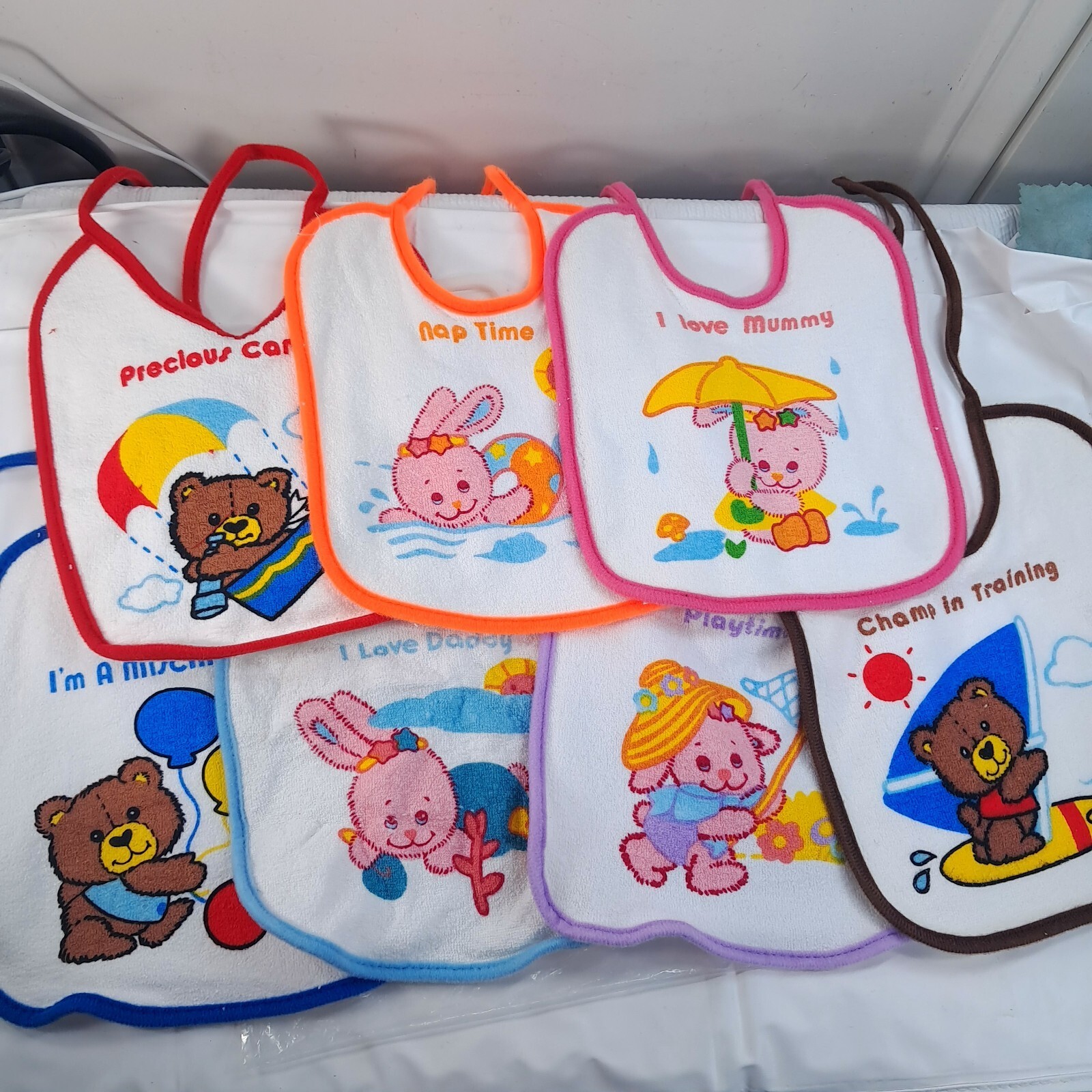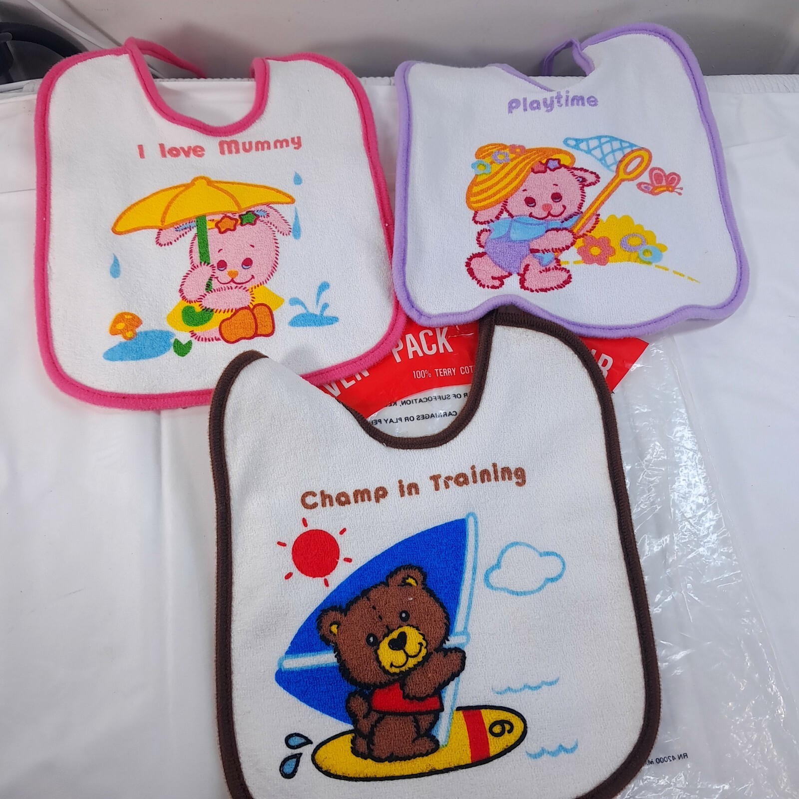 - Vintage KMart Little Ones Baby Bib set 7 k-mart terry cotton 90s bear bunny