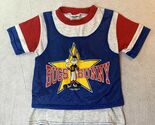 This vintage kids' 90s Looney Tunes Jersey Shirt in size 6 features Bugs Bunny in a baseball-themed design, perfect for casual occasions. Made of cotton and with short sleeves, this original piece from the United States has a hip hop look that adds a fun and nostalgic touch to any child's wardrobe. With its classic white color and iconic Looney Tunes brand, this shirt is a great addition for any young fan of the beloved characters.