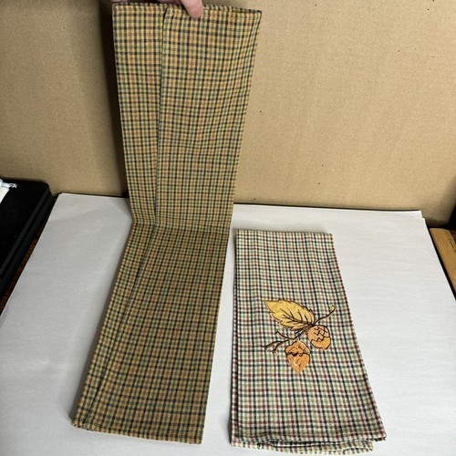 - Vintage Kitchen Dish Towel Fall Plaid Holiday Thanksgiving Embroidered