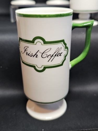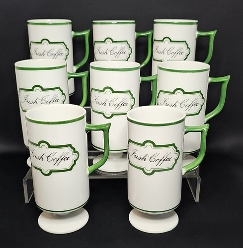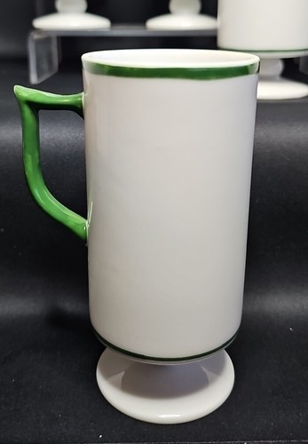 - Vintage Knobler Bone China Footed Irish Coffee Mugs Cups White Green Set of 8