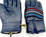 - Vintage Kombi Men Blue Leather Zippered Gloves with Red/White/Blue stripes sz LG