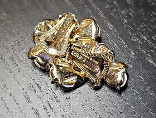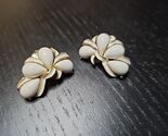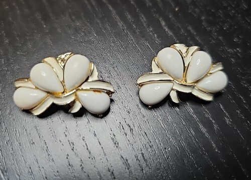 UP FOR SALE: Vintage Kramer White Enamel Gold Tone Clip On Earrings Signed