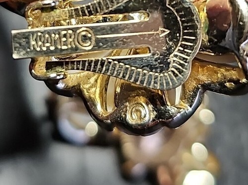 - Vintage Kramer White Enamel Gold Tone Clip On Earrings Signed