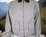 Vintage LL Bean Chore Jacket Mens L Leather Collar Beige Canvas Quilt Lined Work