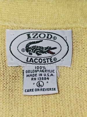 - Vintage Lacoste Izod Yellow Cardigan Sweater Made In USA Size Large Mens 1980s